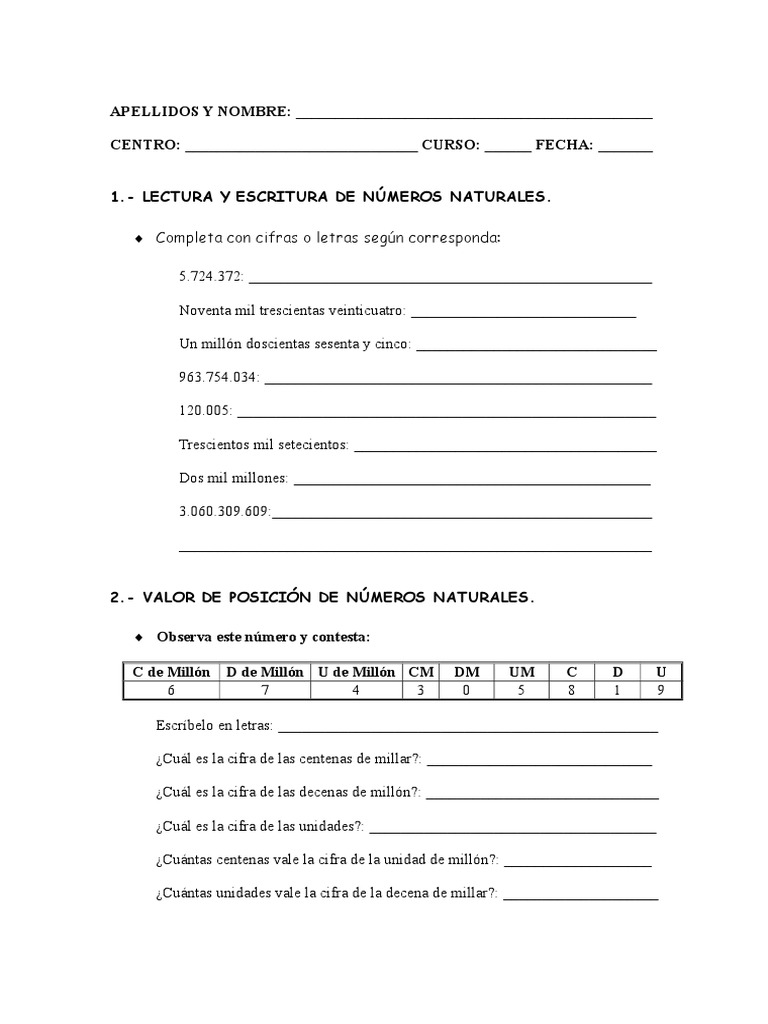 Temas: Numeros Naturales